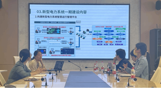 研讨会上,电科院张迪介绍了新型电力系统的发展情况,新型电力系统建设所面临的困境;电科院高昆分享了目前已建成的智能调度平台的应用案例;电勘院张健分析了公司现有资源支持基地建设的可行性。参会人员就新型电力系统实训基地建设内容、建设方案、如何融入公司现有资源、如何有效帮助员工提高对新型电力系统的认知、增强岗位能力等问题开展了深入全面的讨论。