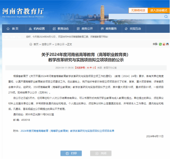 近日,河南省教育厅公示了2024年度河南省高等教育(高等职业教育类)教学改革研究与实践项目拟立项项目,公司主持及联合申报的4个项目成功获得立项,其中重点项目1项,一般项目3项,涵盖了多个领域和方向,充分展示了公司公司产品改革的广度和深度。