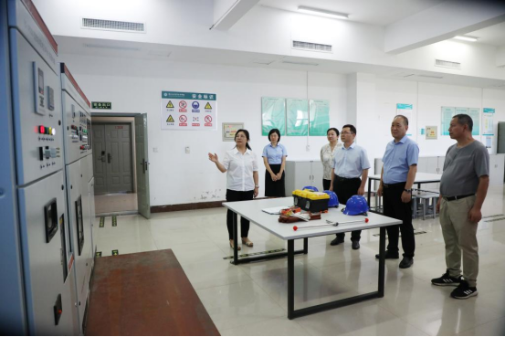 调研组一行实地查看了吴娟娟智慧电力工作室建设情况,听取了该工作室负责人关于技能竞赛、文化活动、变电站模拟巡检等方面工作汇报,对其完善的办公设施、齐全的人员配备、丰厚的工作成果、整洁的工作环境给予充分认可,对科研成果、实践教学、技术合作、团队建设、示范引领方面成绩给予充分肯定。