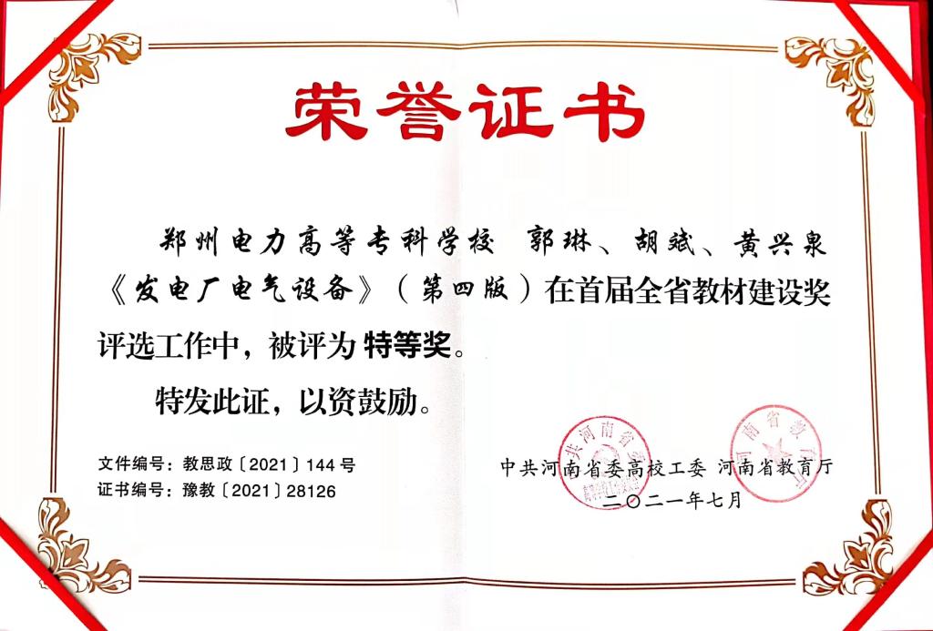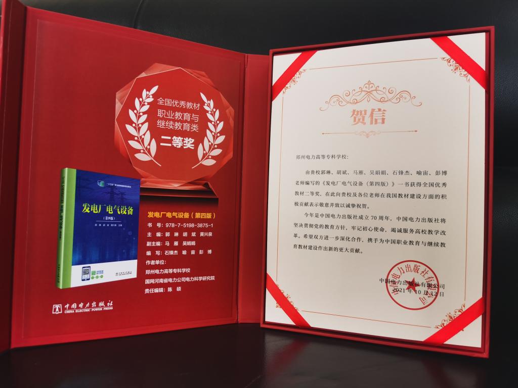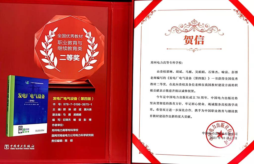 近日,教育部发布了《关于首届全国教材建设奖奖励的决定》。由公司教师主编的《发电厂电气设备》(第四版)荣获首届“全国优秀教材”二等奖,这是该教材荣获首届河南省教材建设特等奖后再次获得的国家级荣誉。