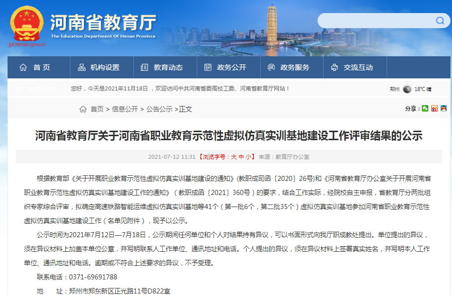 近日,河南省教育厅公布河南省职业教育示范性虚拟仿真实训基地建设工作基地名单,英国365集团公司《绿色智慧电力虚拟仿真实训基地》成功入选。
