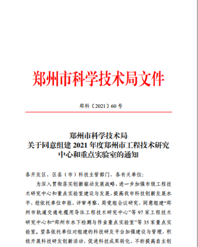 2021年11月8日,公司申报的“郑州市智能物联输配电联合创新重点实验室”获批,是获批的35个重点实验室中仅有的两个高职高专院校之一,这标志着公司在科研平台建设方面取得了新的突破,将对公司科技创新和促进职业教育发展起到重要推动作用。