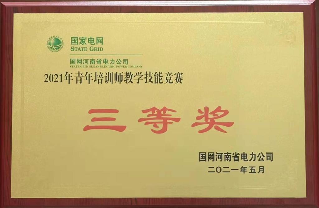 5月26日至28日,国网河南省电力公司2021年青年培训师教学技能竞赛在国网河南省电力公司技培中心举行,经过两天激烈角逐,公司教师李嫚发挥出色,助力公司荣获团体第四名(三等奖)的公司历史最好成绩。