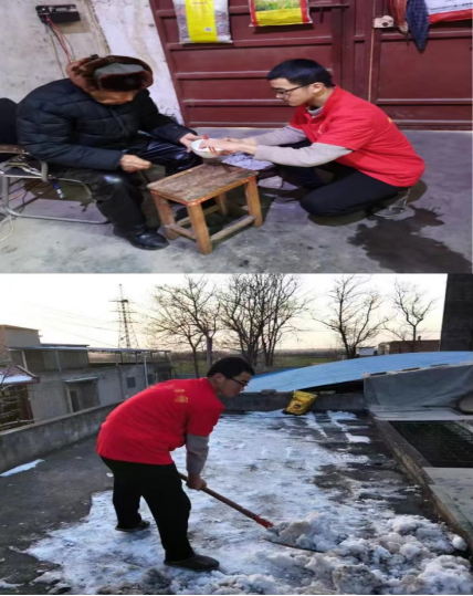 发电2203闫赏返乡后立即投入到当地的"志愿服务送关爱文明实践树新风"活动中,为居民送关心,送温暖,一起喜气洋洋迎新春。