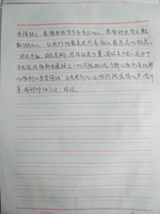 感谢你们,默默付出的人不信谣,不传谣,即使人在家中,仍然心系祖国即使无法效力,也要做到最好的自己面对疫情,我们身处事外,却也身在其中。在医护人员奋战一线的同时,各行各业的人已经行动起来,共同汇聚起守望相助的温暖希望,他们的努力凝聚成一股强大的力量,在这场战争中,如一道光芒,将温暖撒入每个人心中。