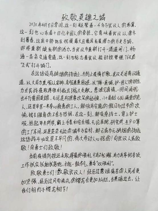 最后让我们一起,祝福武汉,致敬祖国。