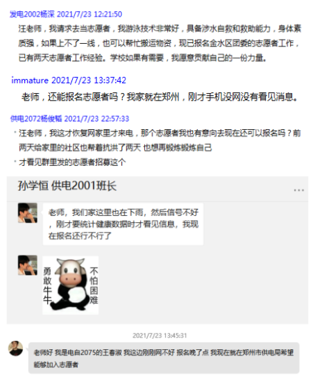 23日中午,教工党支部第一时间接到了公司配合国网公司驰援郑州各支抢险队伍开展志愿服务工作的通知。冲锋在前、战斗在前,一个小时内报名了36名教工党员。有很多教工党员自己家庭尚未通水通电,一片狼藉,有的教工党员尚在外地,收到通知后,立即买票赶回郑州参与志愿服务工作,更有的教工党员父母生病住院,安顿好父母后第一时间报名参与公司志愿服务工作。不忘初心,尽显党员本色。