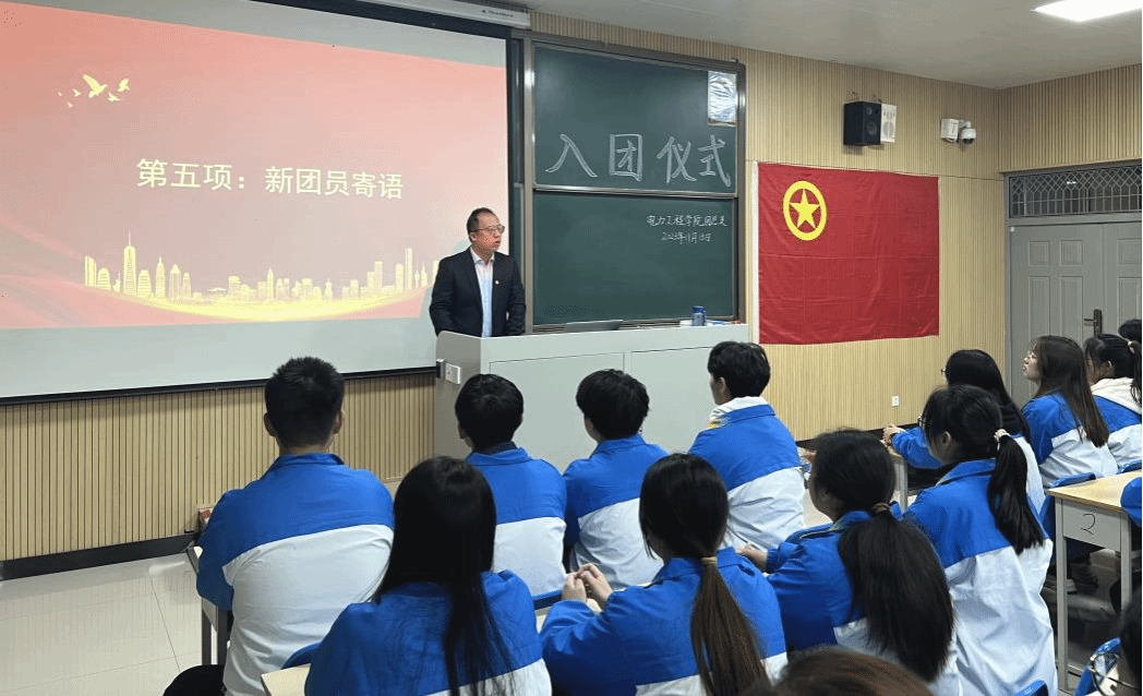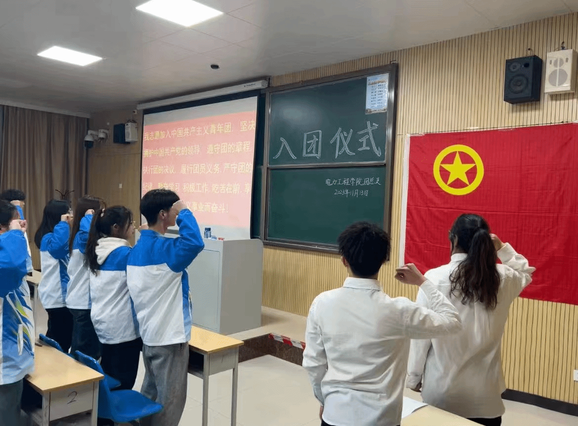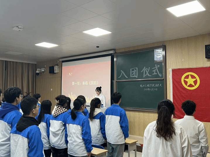 入团仪式在激昂的国歌声中拉开帷幕。首先团总支组织委员宣读新入团人员名单,然后团总支副书记带领新团员面向团旗庄严宣誓,用铿锵有力的誓言表达了成为一名共青团员的责任与担当。