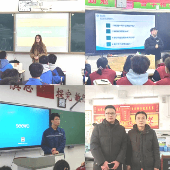 “回访母校,感谢师恩”优秀学子回访母校实践活动。通过开展个人成长汇报会、学习经验交流会、招生政策普及会、公司专业宣讲会等活动形式,多角度、全方位地向母校广大考生展现了电专的办学理念和特色。2023级发电厂及电力系统专业姚冰说:“经历了一学期的老员工活后,我有幸回到自己的高中母校为学弟学妹们答疑解惑,解决关于单招、择校和未来规划的疑问,希望通过我的经验,能够帮助到他们。”